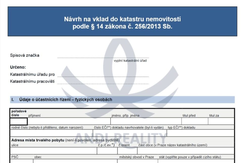 Zajistím podání návrhu na vklad do katastru nemovitostí.