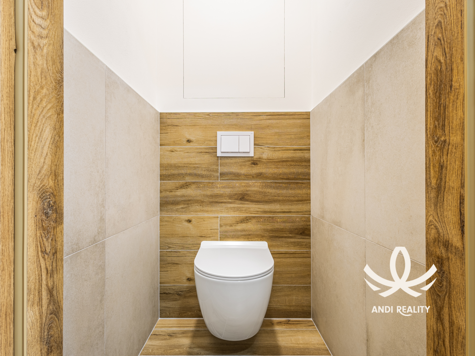 Byt prošel kompletní rekonstrukcí nová koupelna s prostorným sprchovým koutem, umyvadlem a zrcadlem. Vše dělané v příjemném dekoru dřeva. Sprchový kout nabízí dostatek prostoru a je vybavený sprchovým deštěm. Toaleta oddělená od koupelny, ale ve stejném dekoru, aby vše ladilo. Kuchyňský kout je řešený prakticky, vybavený myčkou, troubou, varnou deskou a digestoří. Pro dosažení maximálního úložného prostoru jsou horní skříňky až ke stropu. To působí kompaktně a elegantně.