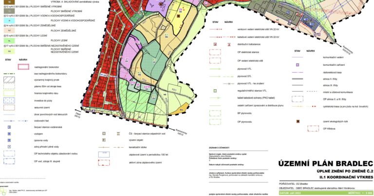 Územní plán: Pozemek se nachází v ploše BI – bydlení v rodinných domech (městské a příměstské) dle platného územního plánu obce Bradlec.