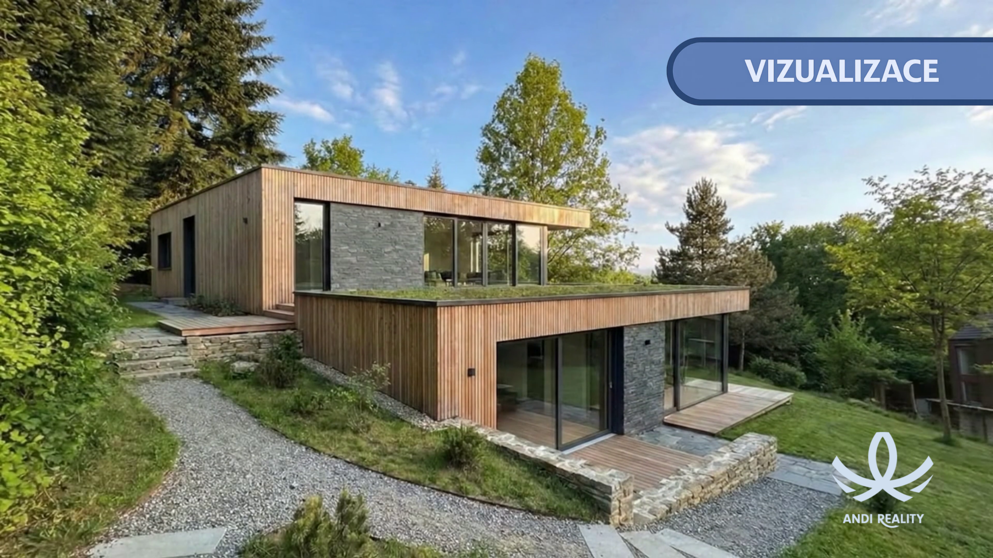 (konkrétní tvar a řešení střechy podléhá požadavkům stavebního úřadu a respektování okolní zástavby)