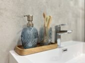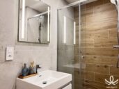 - Koupelna se sprchovým koutem, umyvadlem a zrcadlem.