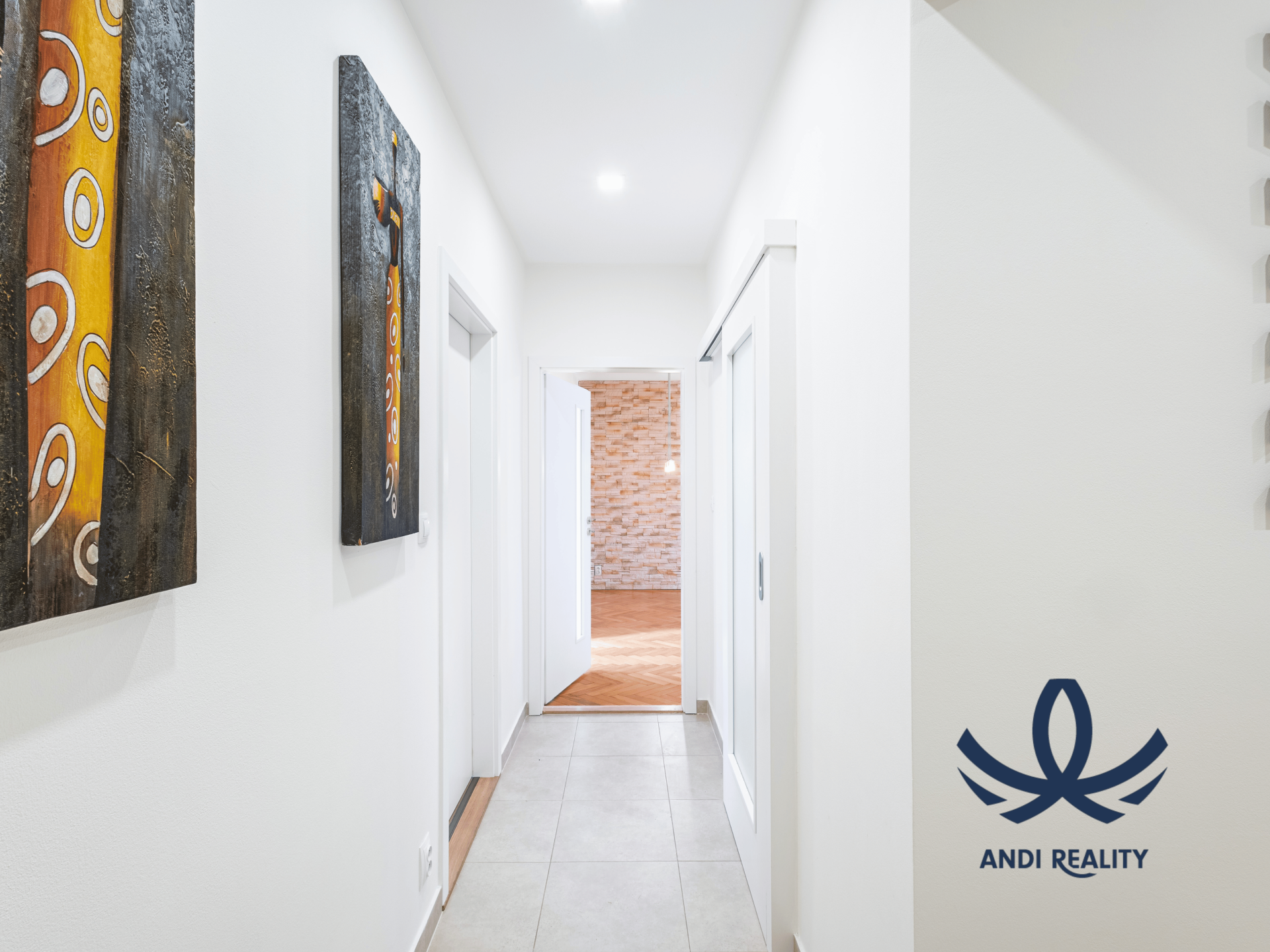 - Chodba, která krásně propojuje všechny pokoje v bytě.