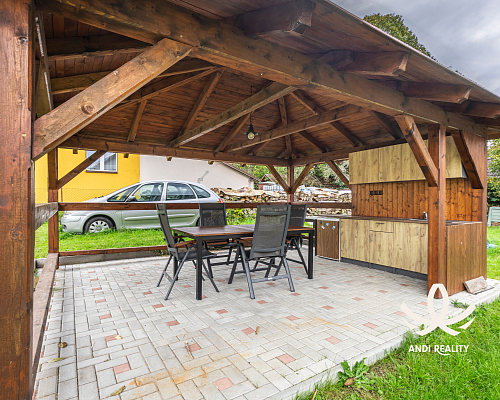 Ihned k pronájmu částečně vybavený dům 4+1 se zahradou a venkovní pergolou.