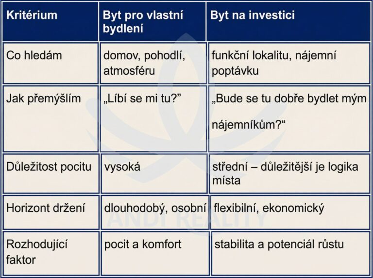 - Plánujete byt užívat osobně, nikoli investičně.